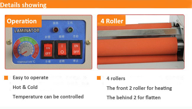 - Solid big roller + Metal gear + Steel shell+ paper backward protection +accurate temperature control